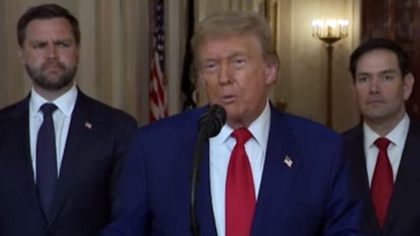 ABD Başkanı Donald Trump, İran’daki üç önemli nükleer tesise yönelik saldırının ardından Beyaz Saray’da kameraların karşısına geçerek ulusa seslendi. Başkan Yardımcısı JD Vance, Dışişleri Bakanı Marco Rubio ve Savunma Bakanı Pete Hegseth’in de eşlik ettiği açıklamada Trump, operasyonun "muazzam bir askeri başarı" olduğunu ve İran’ın artık "barış yapmak zorunda" olduğunu belirtti. Trump konuşmasında "İran'ın Nükleer tesisleri artık yok, ya barış olur, ya çok daha büyük saldırılar" ifadelerini kullandı.