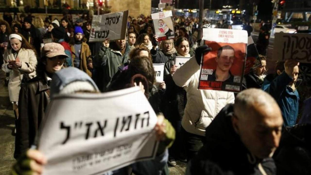 Ellerinde İsrail bayrakları ve esirlerin fotoğraflarını taşıyan göstericiler, Başbakan Binyamin Netanyahu ve hükümet karşıtı sloganlar attı. İsrail polisi göstericilere müdahale etti.