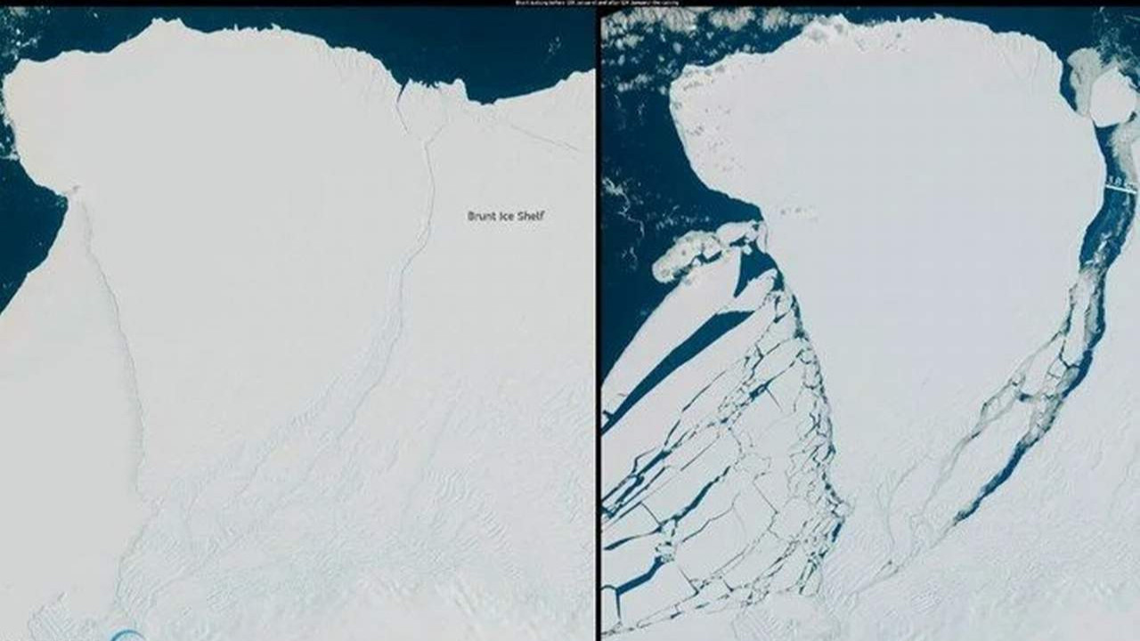 Dev buz kütlesinin Brunt Buz Sahanlığından ayrılışı uydu görüntüleriyle ortaya çıktı. Araştırmacılar, kopmanın pazar günü yaşandığını belirtti.