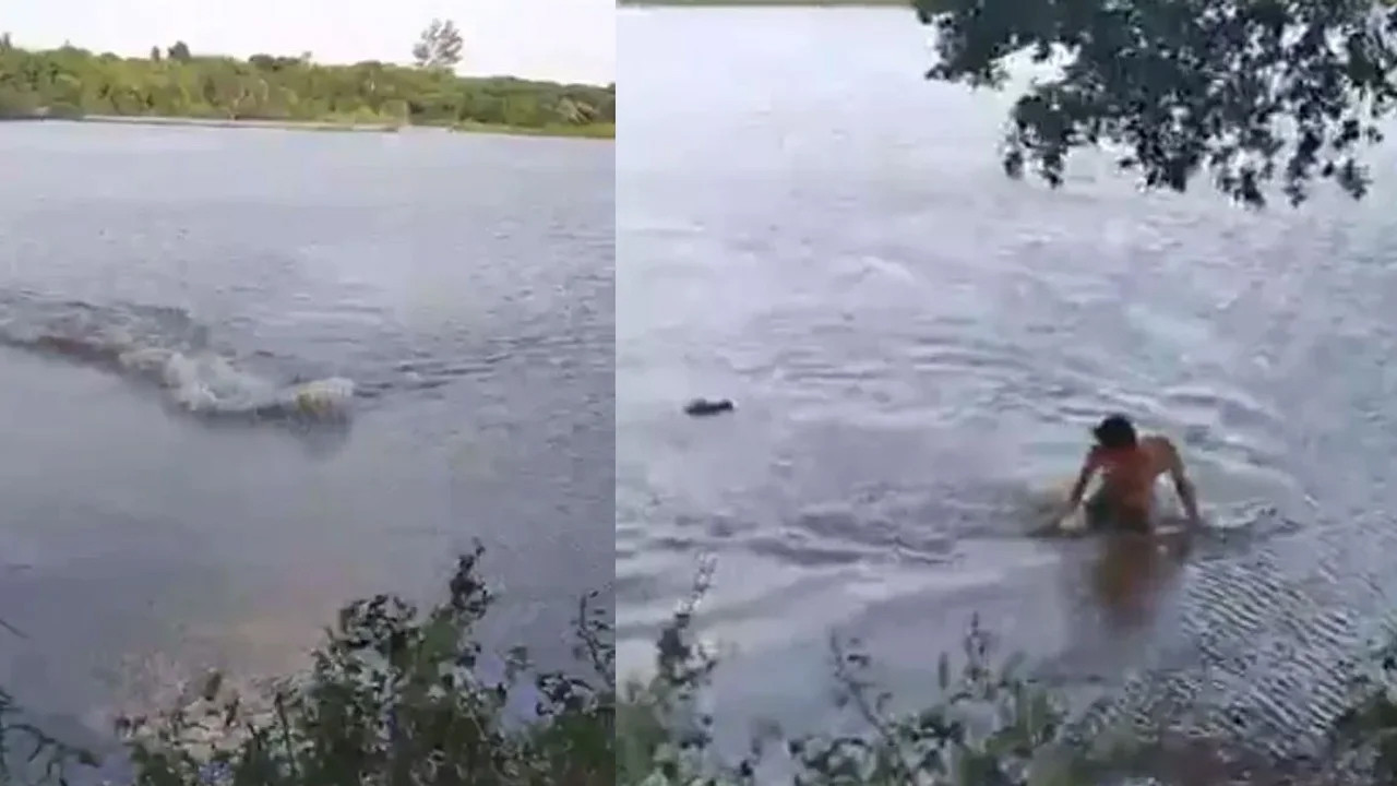 Korkunç anlar kamerada: Timsah, genç adama saldırdı