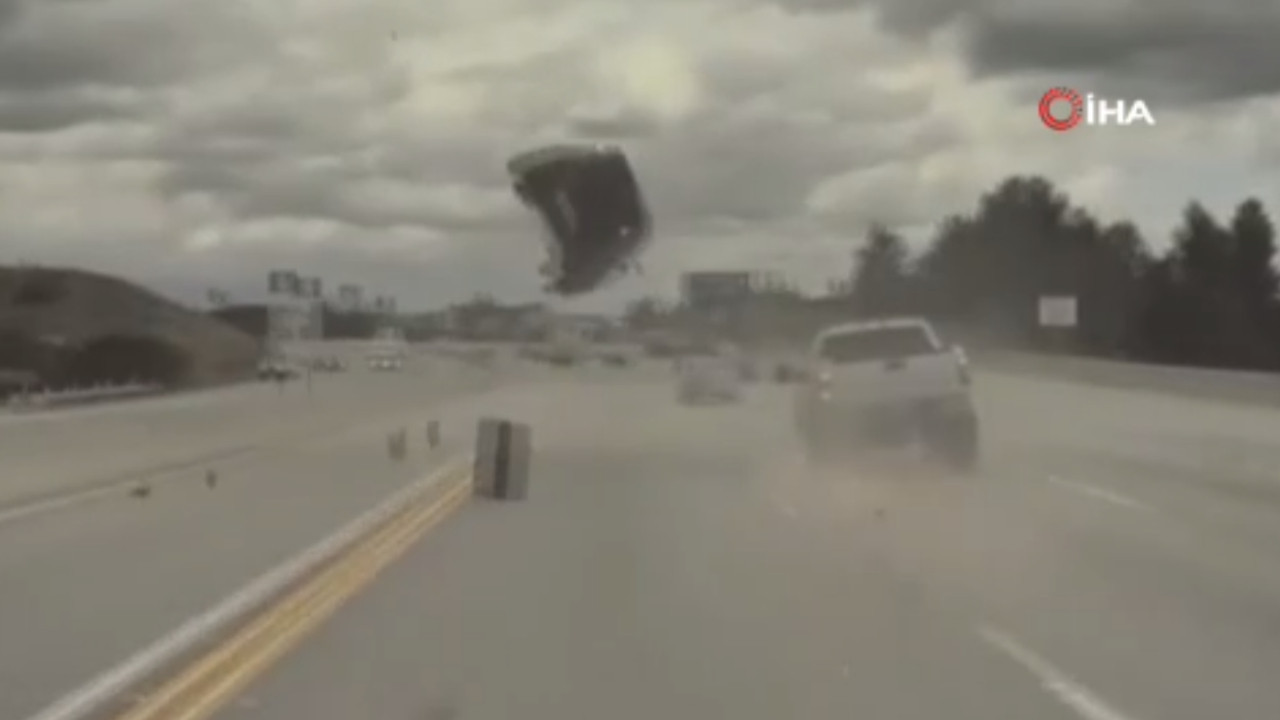 ABD'nin California eyaletinde otoyolda seyir halinde giden bir araçtan kopan tekerlek, kazaya neden oldu. Tekerleğin yandaki araca çarpması sonucu araç, metrelerce havalanıp takla attı. Araç sürücüsü kadın kazadan hafif yara alarak kurtulurken, olay anı araç kamerasına yansıdı.