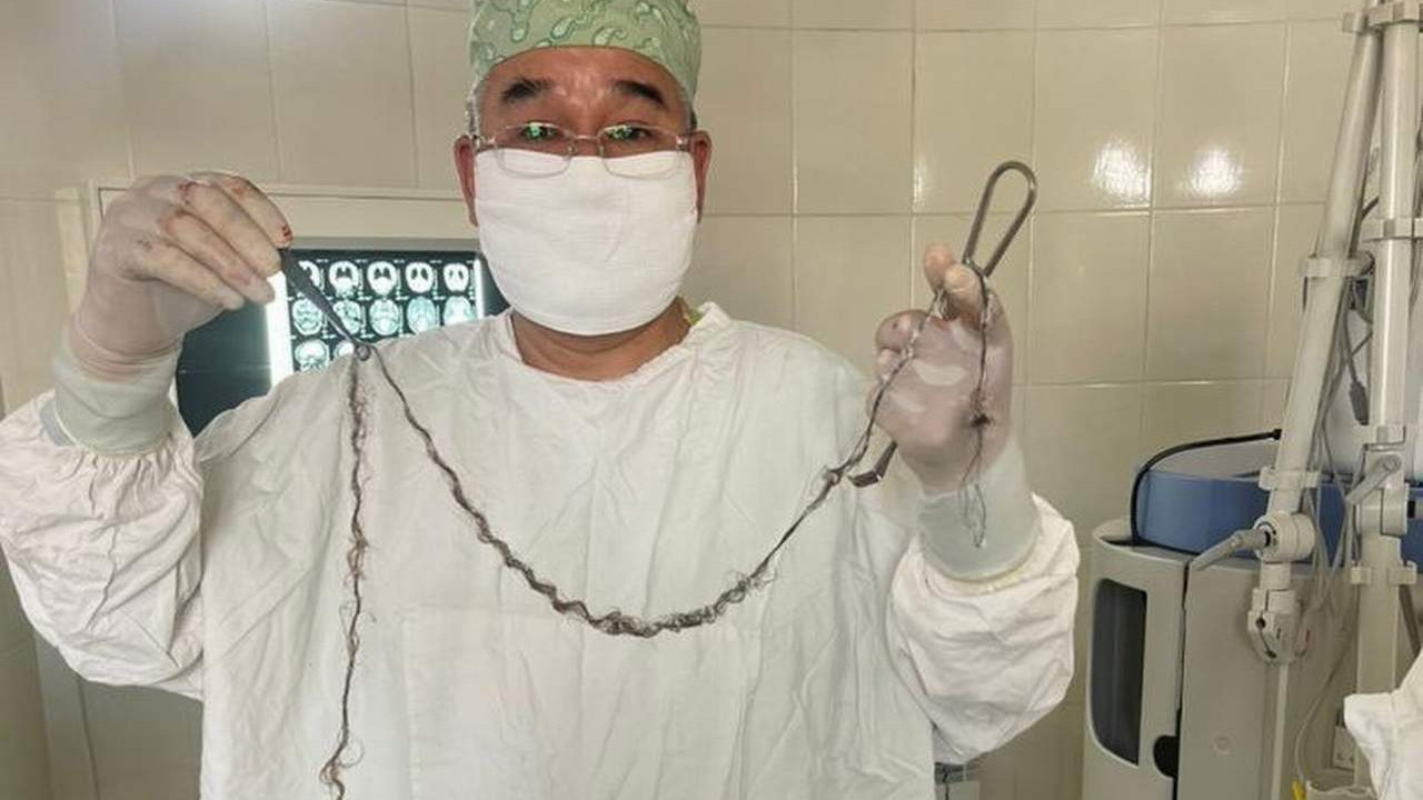 Kırgızistan’da hastanede akıllara durgunluk veren bir olay yaşandı. Başkent Bişkek’teki Ulusal Anne ve Çocuk Sağlığı Merkezi’ne başvuran 8 yaşındaki kız çocuğunun beyninde bir kitle tespit edildi. Yapılan tetkiklerin ardından ameliyata alınan kızın beyninden bir tutam saç çıkarıldığı belirtildi. Kırgızistan Sağlık Bakanlığı tarafından yapılan açıklamada, ameliyatın başarılı geçtiği aktarılırken, kızın beynindeki saçın 8 yıl boyunca içeriye doğru uzadığı kaydedildi. Açıklamada, bu hastalığın rahimdeki gelişim bozukluğundan kaynaklanabileceği ifade edildi.