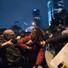 Daha sonra göstericilerden bir grup yürüyüşe geçerek Savunma Bakanlığının da bulunduğu Kaplan Caddesi'ni trafiğe kapatmak istedi. Yaya ve atlı polislerle göstericilere müdahale eden İsrail güçleri en az iki kişiyi gözaltına aldı. Yaklaşık iki saat süren müdahale sırasında polisle göstericiler arasında sık sık arbede yaşanırken, polis atlarından biri kadın bir göstericinin ayağını ezdi.