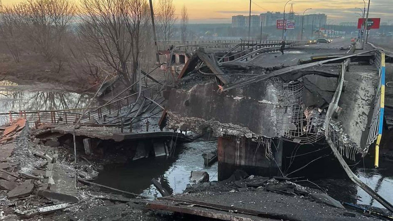 Ukrayna ordusu, Rus askeri araçlarının geçişini engellemek için Kiev'de bulunan bir köprüyü havaya uçurdu.