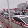 Çin’in Jiangsu eyaletine bağlı Suzhou kentinde soğuk hava dalgası etkili odu. Otoyolda görülen buzlanma nedeniyle 100’den fazla araç birbirine girdi. Polis, 6’sı hafif olmak üzere 9 kişinin yaralandığını aktardı. Bir aracın otoyoldaki trafik polisine çarptığı anlar, başka bir aracın kamerasına yansıdı. Polisin çarpmanın etkisiyle yere düşerek savrulduğu görüldü.