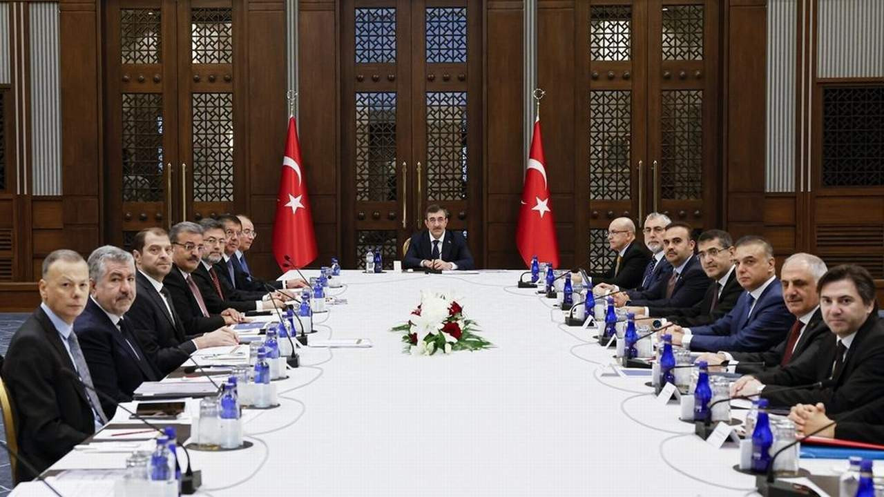 Cumhurbaşkanlığı Külliyesi'ndeki toplantıya, Çalışma ve Sosyal Güvenlik Bakanı Vedat Işıkhan, Hazine ve Maliye Bakanı Mehmet Şimşek, Sanayi ve Teknoloji Bakanı Mehmet Fatih Kacır, Tarım ve Orman Bakanı İbrahim Yumaklı, Cumhurbaşkanlığı Strateji ve Bütçe Başkanı İbrahim Şenel, Merkez Bankası Başkanı Hafize Gaye Erkan, AK Parti Genel Başkanvekili Efkan Ala, Genel Başkan Yardımcısı Nihat Zeybekci ile ilgili kurum ve kuruluşların temsilcileri katıldı.