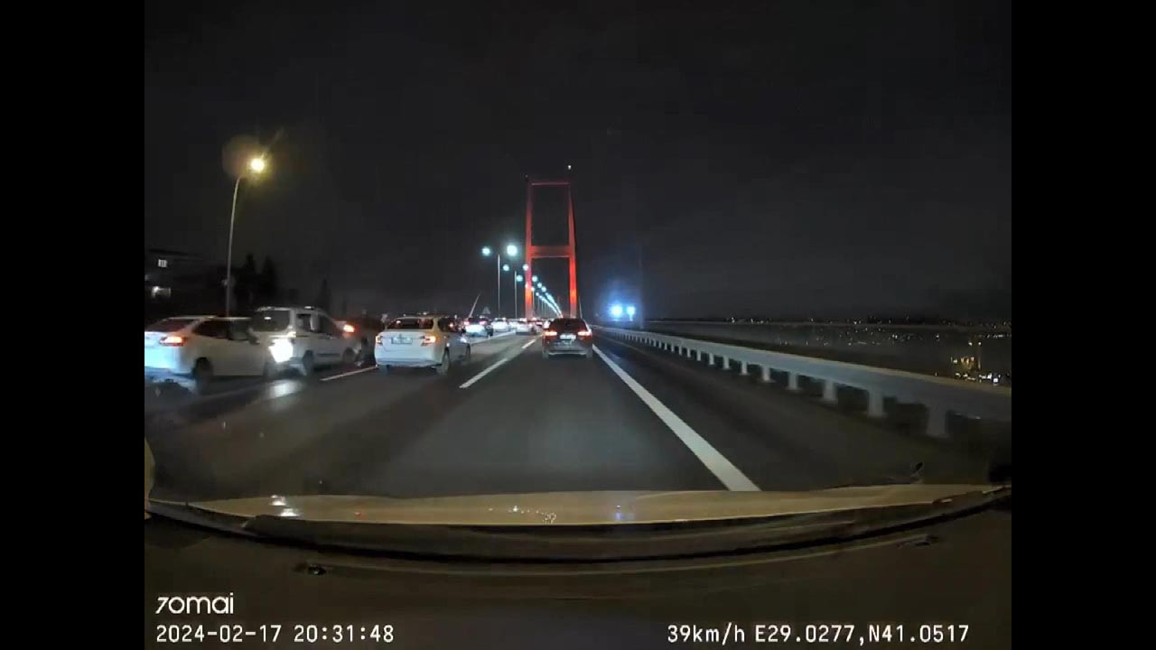 İstanbul'da 15 Temmuz Şehitler Köprüsü'nde 6 aracın karıştığı zincirleme trafik kazası araç kamerasına yansıdı.