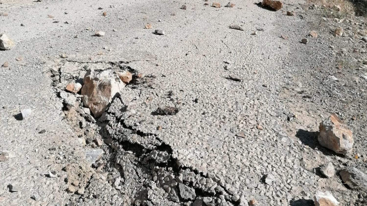 Adana'nın Kozan ilçe merkezli depremde Feke ilçesi Uğurlubağ Mahallesi'nin dağlık alanından yola kaya parçaları düştü.