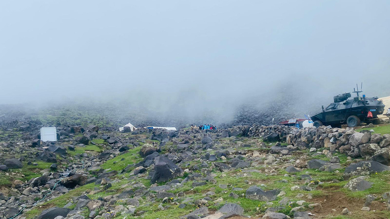 112 Acil Çağrı Merkezi'ne yapılan ihbar sonrası AFAD, jandarma ve sağlık ekipleri arama başlattı. Yerli rehberlerden oluşan bir ekip ile Van AFAD'dan 10, Ağrı AFAD'dan 4 kişilik ekip, 3 bin 200 rakımdan zirveye tırmanışa geçti.