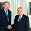 Erdoğan ve Bahçeli, tokalaşıp basın mensuplarına poz verdikten sonra konuta geçti.