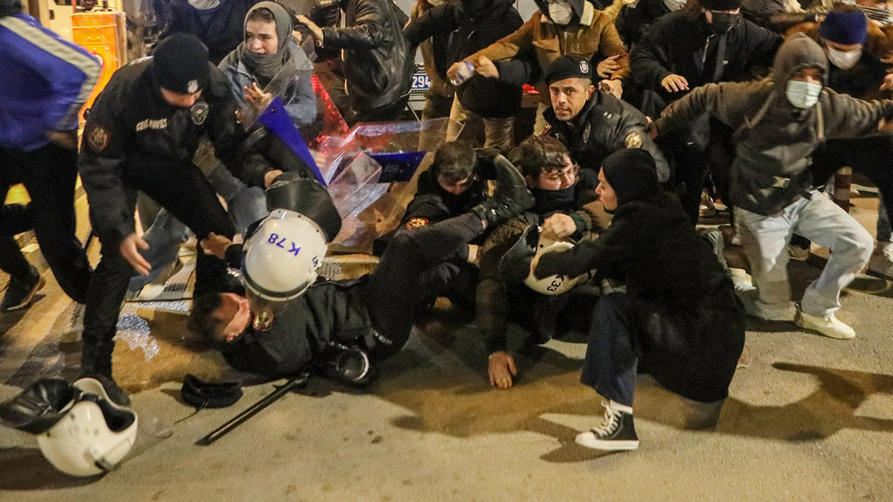 Kampüs dışındaki grup ile üniversite kapısı önündeki göstericilere polis TOMA aracından su sıkarak müdahale etti.