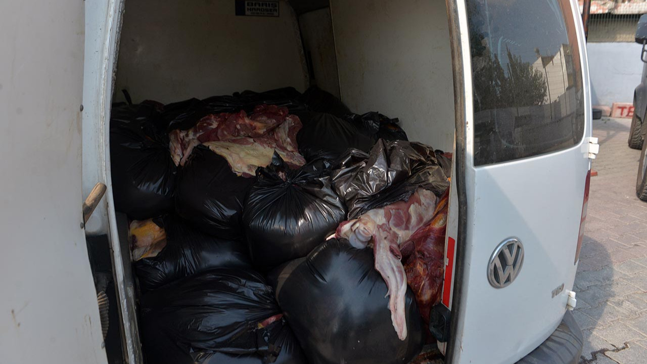 Adana'da polisin durdurduğu hafif ticari araçtan 1.5 ton tek tırnaklı hayvan eti çıktı. Gözaltına alınan sürücü, ''Ben kasabım, hayvanları kendim kestim. Etleri de akrabalarıma dağıtmak üzere oturduğum mahalleye götürüyordum'' dedi.