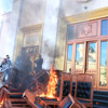 Muhalefette milletvekilleri, dışarı çıkardıkları sandalyeleri ateşe verdi. Bunun üzerine Meclis Başkanı Spiropali oturumu yarıda kesti.