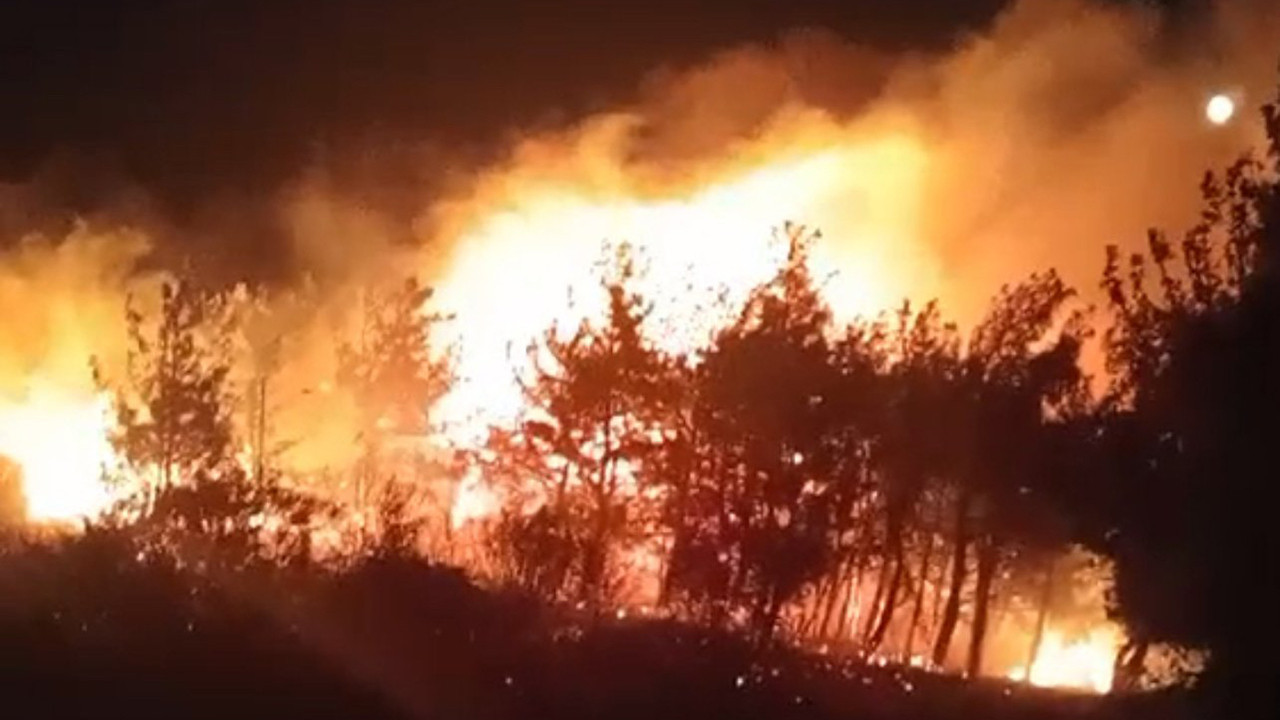Edinilen bilgiye göre, Ayvalık'ın turistik Küçükköy Mahallesi'nde saat 21.15 sıralarında çıkan orman yangını şiddetli poyrazında etkisiyle kısa sürede büyüdü.