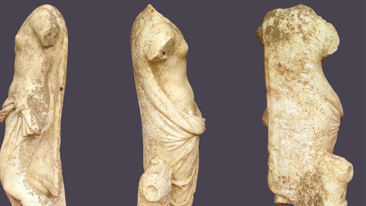 Açıklamaya göre; proje dahilinde Akropolis’te yer alan 'İki Katlı Dükkânlar – Stoa Kompleksi'ndeki 14'üncü dükkanda yürütülen kazılar sırasında, mekan içinde bulunan dükkan tezgahının önünde ve arkasında, taban seviyesinde iki adet küçük boyutlu Zeus ve Aphrodite heykelleri keşfedildi. Roma İmparatorluk Dönemi’nin erken safhasına ait olan ve günümüzden yaklaşık 2000 yıl önce yapılan heykeller, büyük oranda iyi korunmuş durumda. Aphrodite heykeli, yarı giyimli ve ayakta betimlenmiş olup, bir eliyle mantosunu tutarken, sağ ayağının hemen bitişiğinde imparator zırhı görünümünde bir destek bulunuyor.