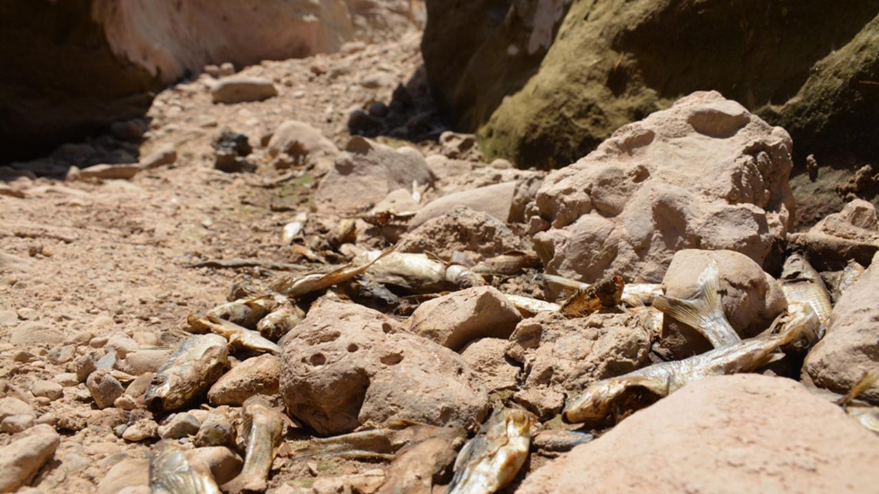 Yağışların azlığı ve sıcaklıkların etkisine maruz kalan dere kuruyunca yüzlerce balık öldü.