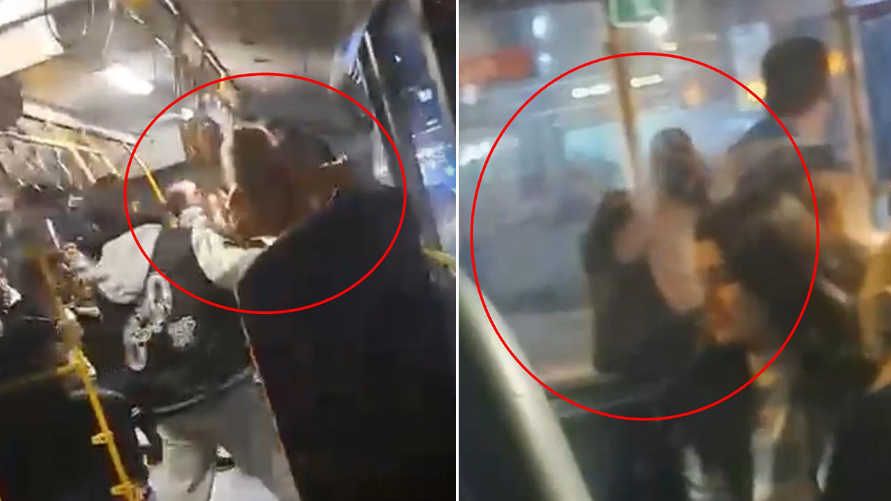 Kavga, tarafların otobüsten inmesinin ardından da devam etti. Çevredekilerin müdahalesiyle sona eren olay, başka bir yolcunun cep telefonu kamerasına yansıdı.
