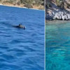 Türkbükü açıklarında tekne turu yapan turistler, denizde bir yaban domuzunun yüzdüğünü gördü. Bir süre yüzen domuz kıyıya çıkıp, kayalıklara tırmandıktan sonra gözden kayboldu.