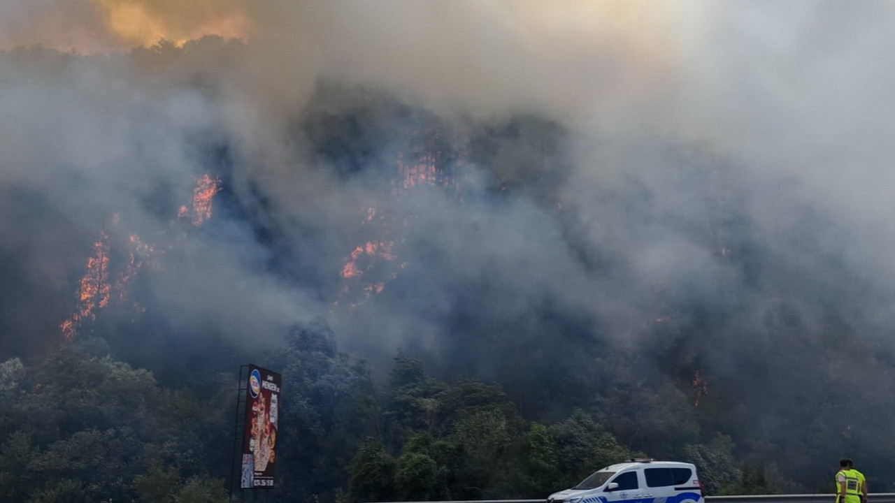 Bolu'nun Mengen ilçesinde orman yangını çıktı, ekipler alevlere müdahale ediyor.