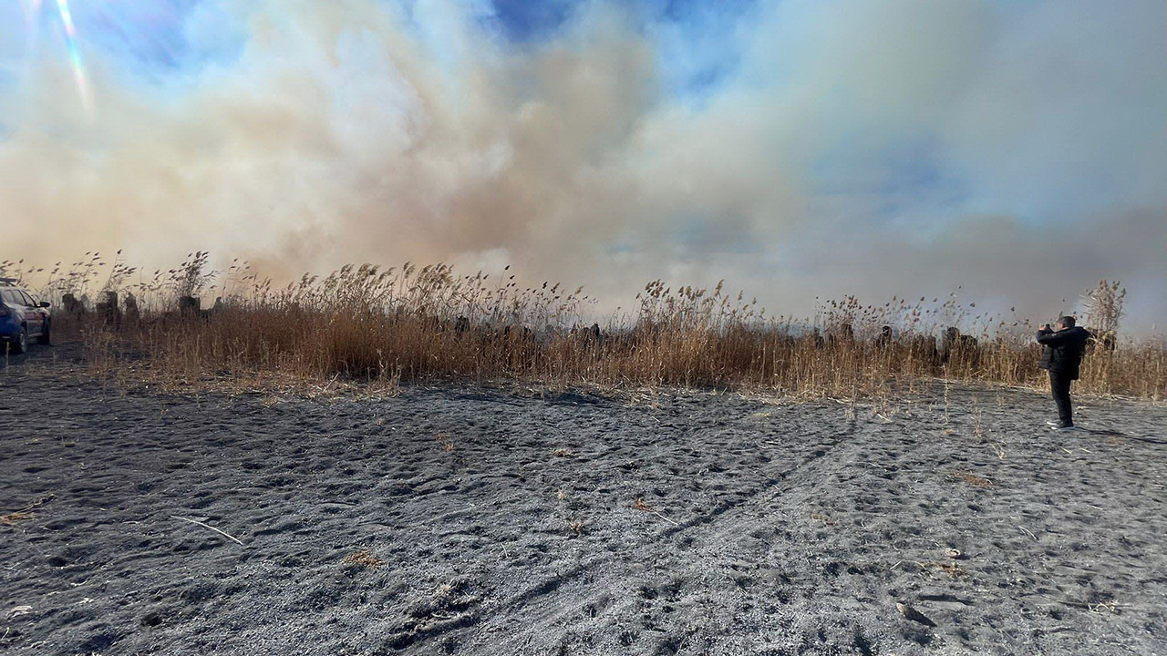 Bu yıl tamamen kuruyan gölde yangın çıktı: Alevler 2 gündür ortalığı cehenneme çevirdi