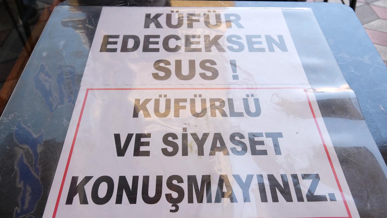 İstasyon Mahallesi'nde çayevi işleten Serdar Aktaş, müşteriler arasında sevgi dilini yaygınlaştırmak ve zaman zaman sertleşen tartışmaların önüne geçmek için siyaset ve küfürlü konuşmayı yasakladı. Masalara ve iş yeri girişindeki cama, 'Bu çayevinde küfürlü konuşmak ve siyaset konuşmak yasaktır', 'Küfredeceksen sus' afişleri asıldı.