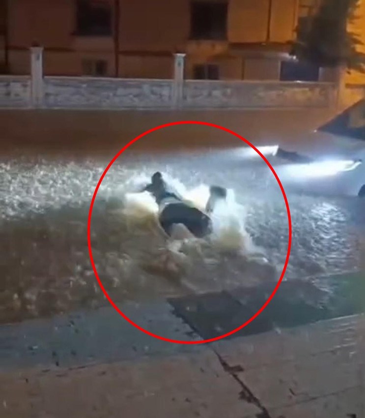 Burası göl değil, sokak! Sel sularına atlayıp böyle yüzdü