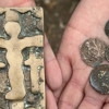 Tarih boyunca 4 medeniyete başşehirlik yapmış Unesco’ya aday Bursa’nın İznik ilçesinde kendine ait şeftali tarlasında budama çalışması yapan Özkan Yılmaz, 4 adet sikke ve üzerinde haç ve çocuk kabartmaları bulunan tablete benzer tarihi bir parça buldu.
