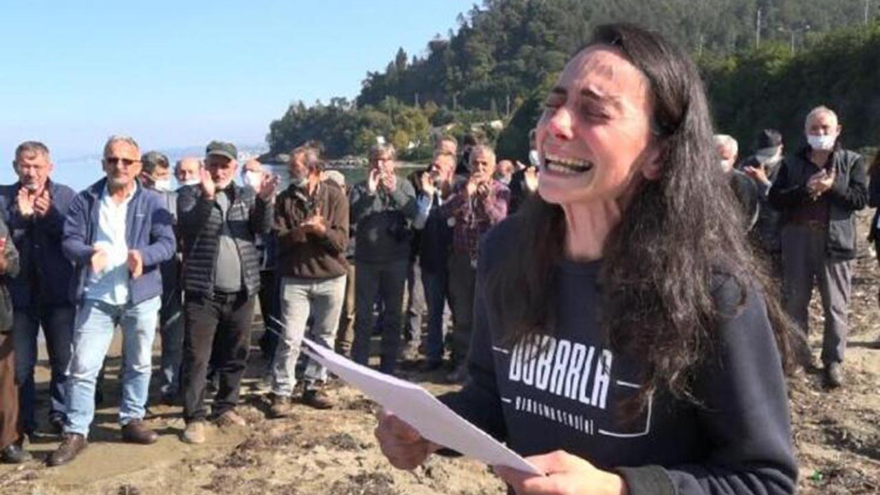 Ressam Gökçe Erhan, evi yanmasına rağmen deniz ekosistemine zarar verdiği iddiasıyla kültür balıkçılığı tesislerinin kurulmasına karşı düzenlenen basın açıklamasına katıldı.