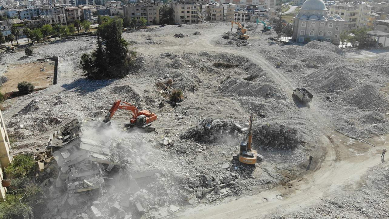 Depremin vurduğu Hatay’da yıkım ekipleri, 40 dereceyi geçen Afrika sıcaklarına aldırış etmeden çalışmalarını aralıksız sürdürüyor.