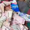 Dilencilik yaptığı belirlenen kadının pazar arabasında ve üzerindeki poşetlerde paralar ve 10 çeyrek altın bulundu.