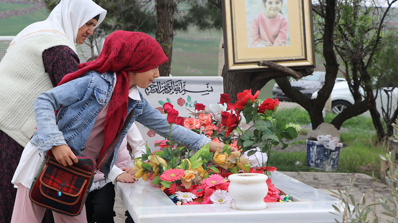 Diyarbakır’da Ramazan Bayramı’nın ilk günü mezarlıklar, yakınlarının kabirlerini ziyaret edip dua edenlerle dolarken Diyarbakırlılar, Bağlar ilçesi kırsal Tavşantepe Mahallesi'nde 21 Ağustos 2024'te kaybolduktan sonra arama çalışmalarının 19'uncu gününde dere yatağında çuvalda, üzeri 30, 25 ve 20 kilo ağırlığındaki 3 taşla kapatılıp, çalılıklarla gizlenmiş halde cansız bedeni bulunan Narin G. ile Van'da kaldığı yurttan 27 Eylül 2024’te çıktıktan sonra, bir daha haber alınamayan, arama çalışmalarının 18’inci gününde Mollakasım Mahallesi’nde kıyıda cansız bedeni bulunan üniversite öğrencisi Rojin K.'in de kabirlerini ziyaret ederek dua etti, bayram şekeri bıraktı.