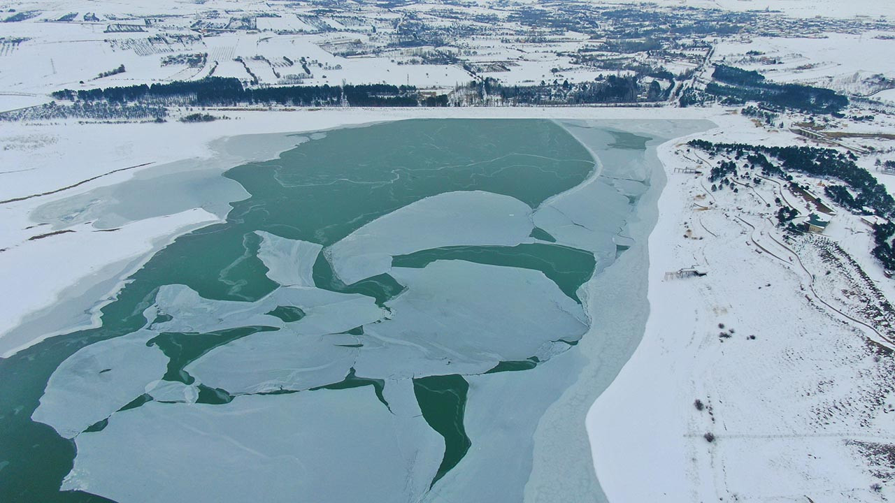 Elazığ'da etkili olan soğuk hava nedeniyle Cip Baraj Gölü buz tuttu. Ortaya çıkan manzara Antarktika'yı aratmadı.