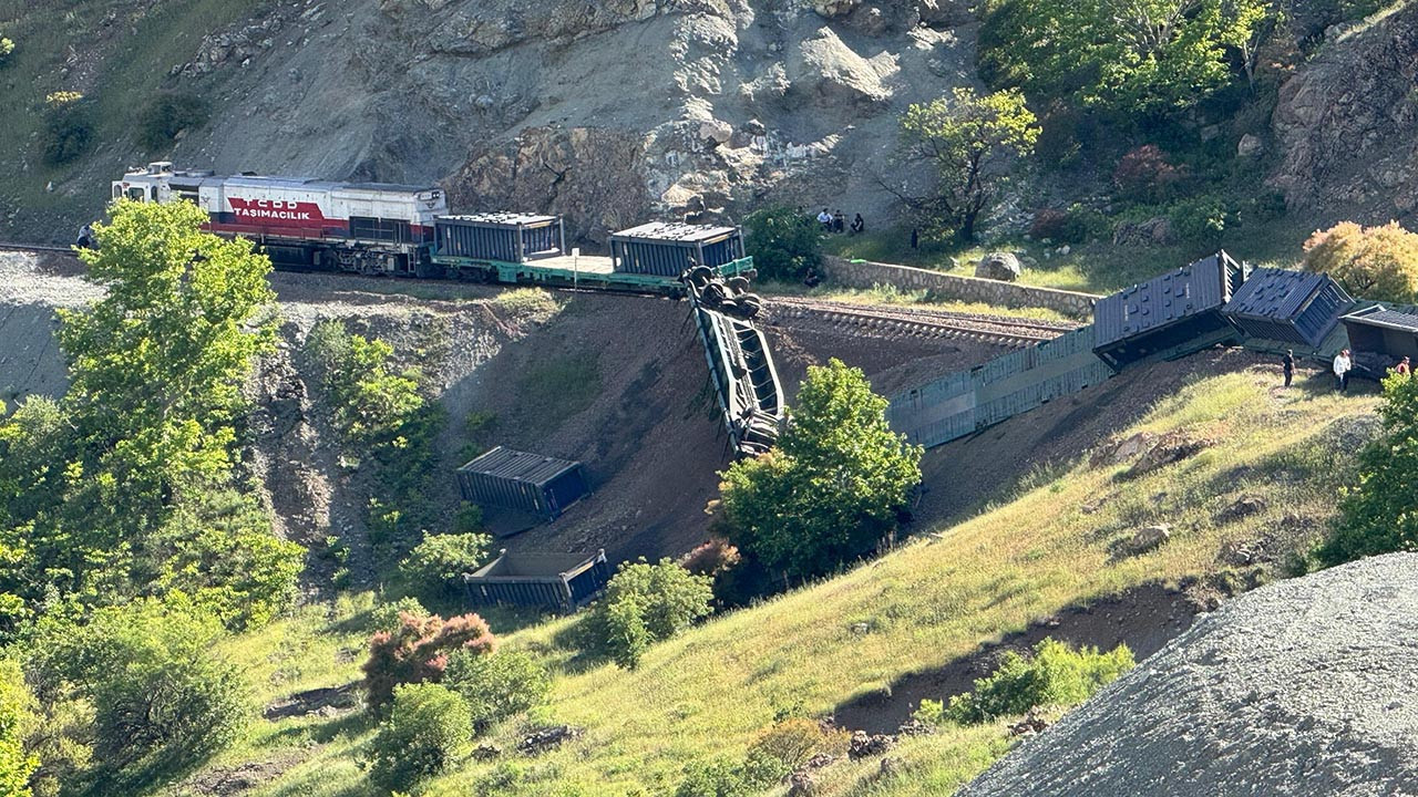 Elazığ'da maden cevheri taşıyan yük treninin 5 vagonu raydan çıktı. 3 vagonun devrildiği kazada, ölen ya da yaralanan olmadı.