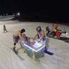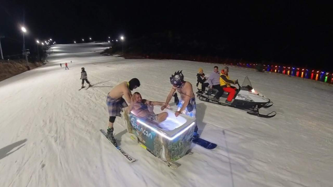 Erzincan’da bulunan Ergan Dağı Kayak Merkezi'nin pistinde yapılan içi sıcak su dolu küvetlerle yapılan sıra dışı kayak ilginç görüntüler oluşturdu.