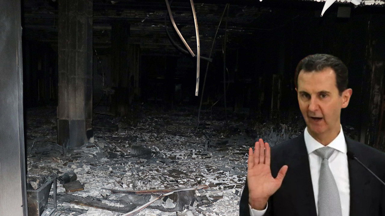 Esad'ın saray rejiminin karargahı ''korku sarayı'' ateşe verildi; geriye bu kaldı...