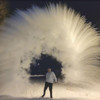 Çeşme ve su göletlerinin yüzeyi buz tutan kentte, havaya serpilen sıcak suyun donarak kristalleştiği anlar, güzel görüntüler oluşturdu.