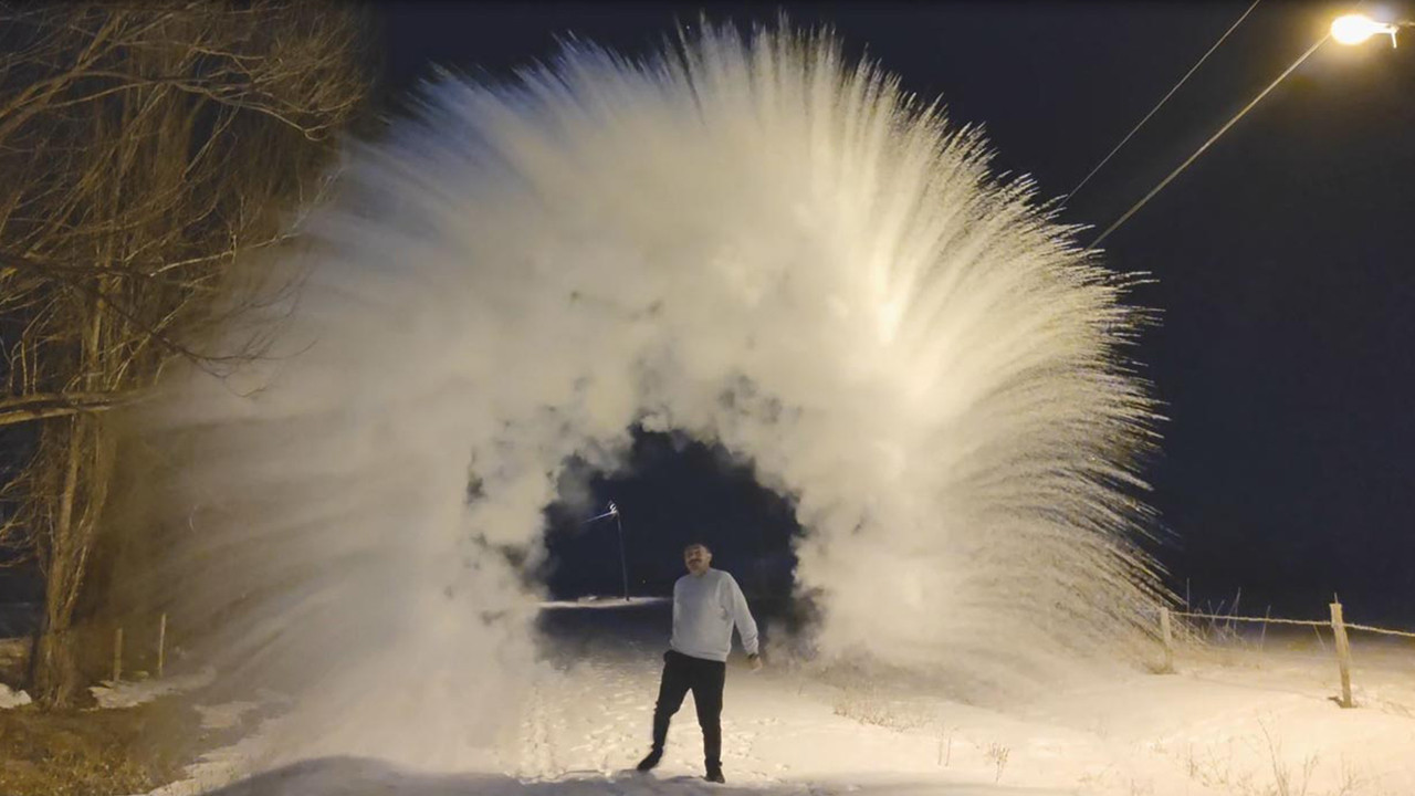 Eski 22 derecede havaya atılan sıcak su kristalleşti