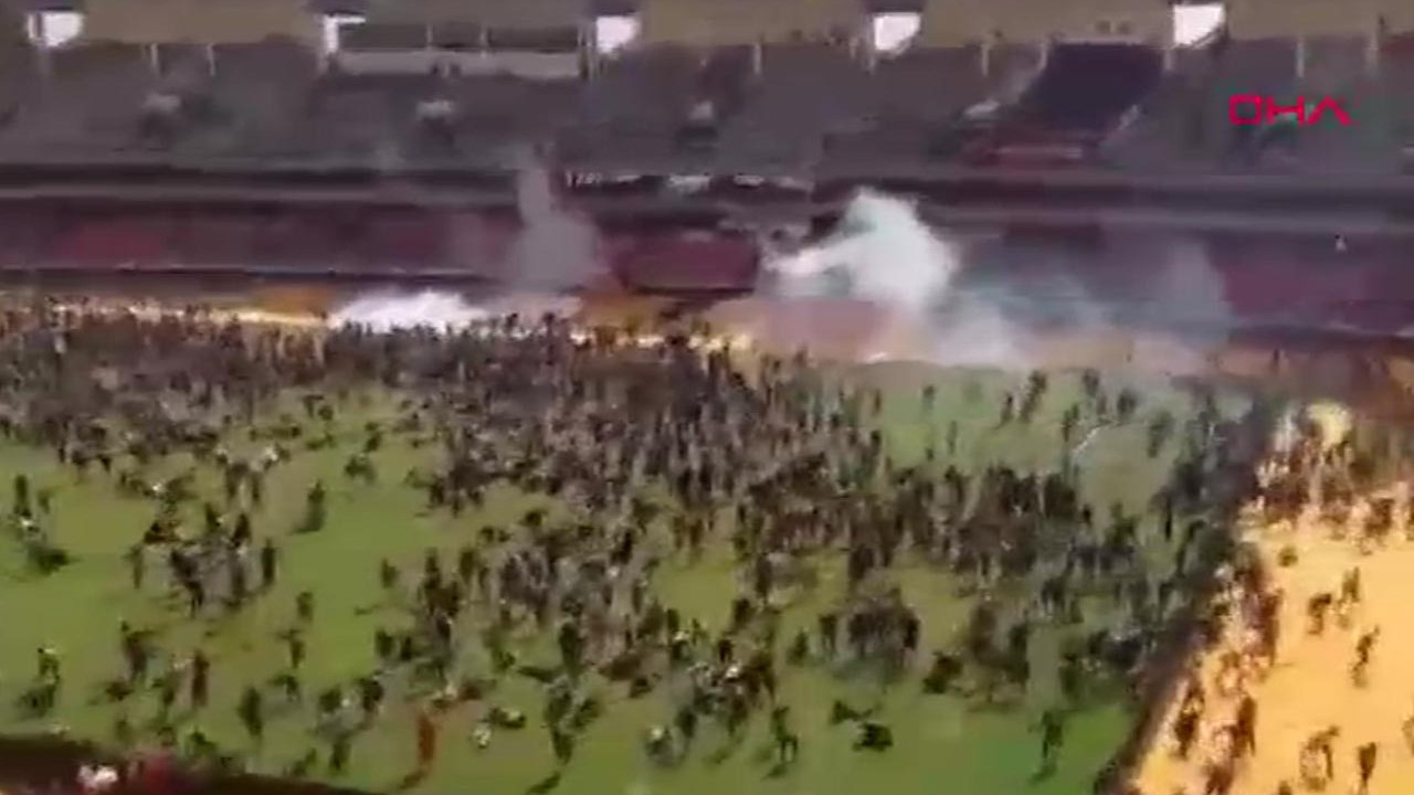 Yetkililer tarafından yapılan açıklamada, ziyaretteki kalabalıktan bazı kişilerin törendeki yasaklı bölgelere girdiği ve güvenlik güçlerinin bu nedenle güvenlik önlemleri kapsamında kalabalığı dağıtmak zorunda kaldığı belirtildi. Stadyumun dışında bir araya gelen kalabalığın olayı protesto etmesi üzerine polis sert müdahalede bulundu. Kalabalığın stadyum kapılarından birini aşmasının ardından ise polis protestoculara karşı göz yaşartıcı gaz kullandı.