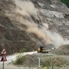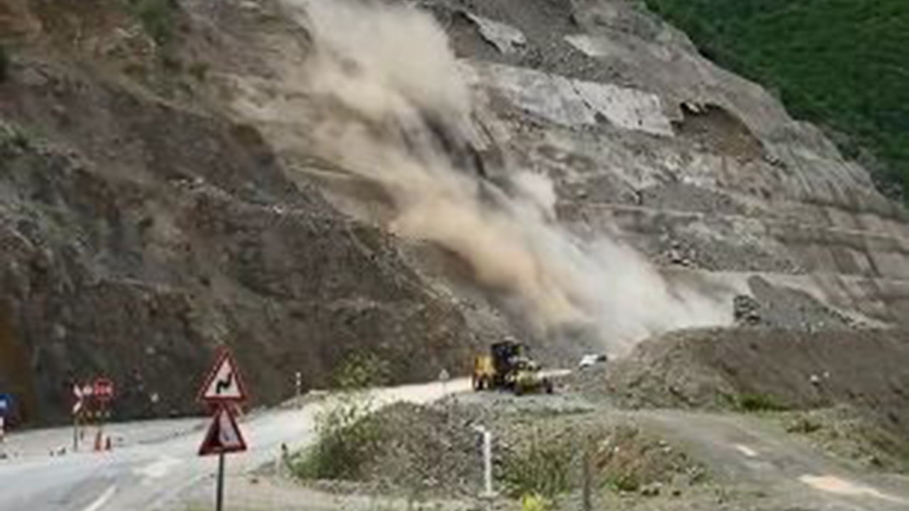 Yamaçtan düşen toprak ve kaya parçaları karayoluna düştü.