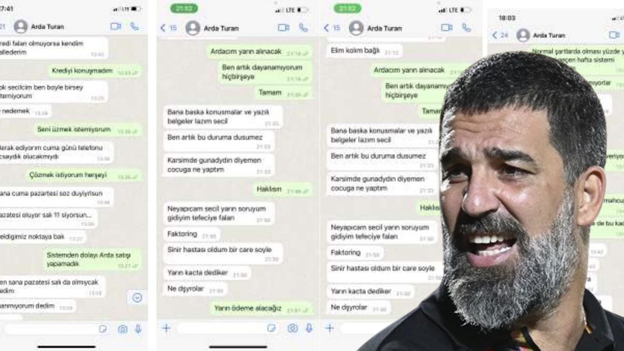 S.E.'nin Arda Turan ile arasındaki mesajlaşmalar da bilirkişi raporunda yer aldı. Arda Turan'ın, "S.'cim ne yaptın, bunu bana nasıl yaparsın, senin için gittim borçlar istedim, sözler verdim hiçbirini tutamıyorum. İnsanların gözünde ne hale düştüm. Ben yarın insanların maaşlarını nasıl ödeyeceğim" diye yazdığı S.E. ise "Çok mahcubum" Cevabını yazdığı görülüyor. Konuşmaların devamında Arda Turan'ın, "Ne yapacağım S., yarın gideyim sorayım tefeciye falan. Faktoring. Sinir hastası oldum bir çare söyle. Yarın kaçta dediler, ne diyorlar?" dediği, E.'nin, "Yarın ödeme alacağız. Normal şartlarda olması yüzde 100 olan bir şey geçen hafta sistemi kapattıkları için vadeyi tutturamıyorlar" şeklinde yanıt verdiği görülüyor.