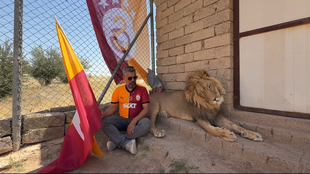 Kuzey Irak'ın Duhok şehrinde evinde beslediği aslanlardan dolayı aslan terbiyecisi olarak bilinen Diyarbakırlı iş insanı Ahmet Akbey, Galatarasay'ın 25. şampiyonluğunu aslanlarıyla kutladı.