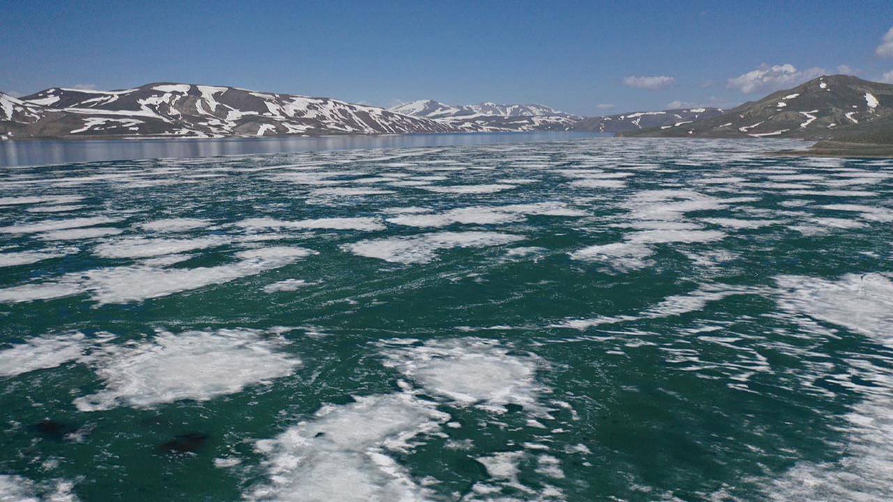 Adaları, kuş, balık türleri ve el değmemiş doğasıyla dikkati çeken gölde buzların yarısı erirken kalan kısımda da çözülme devam ediyor.