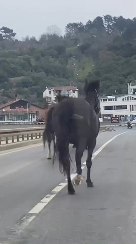 Trafikte kısa süreli aksama yaşanırken, atların Riva girişinde durduğu görüldü. Bir süre bölgede bekleyen atlar, daha sonra ters istikamete yönelerek gözden kayboldu.