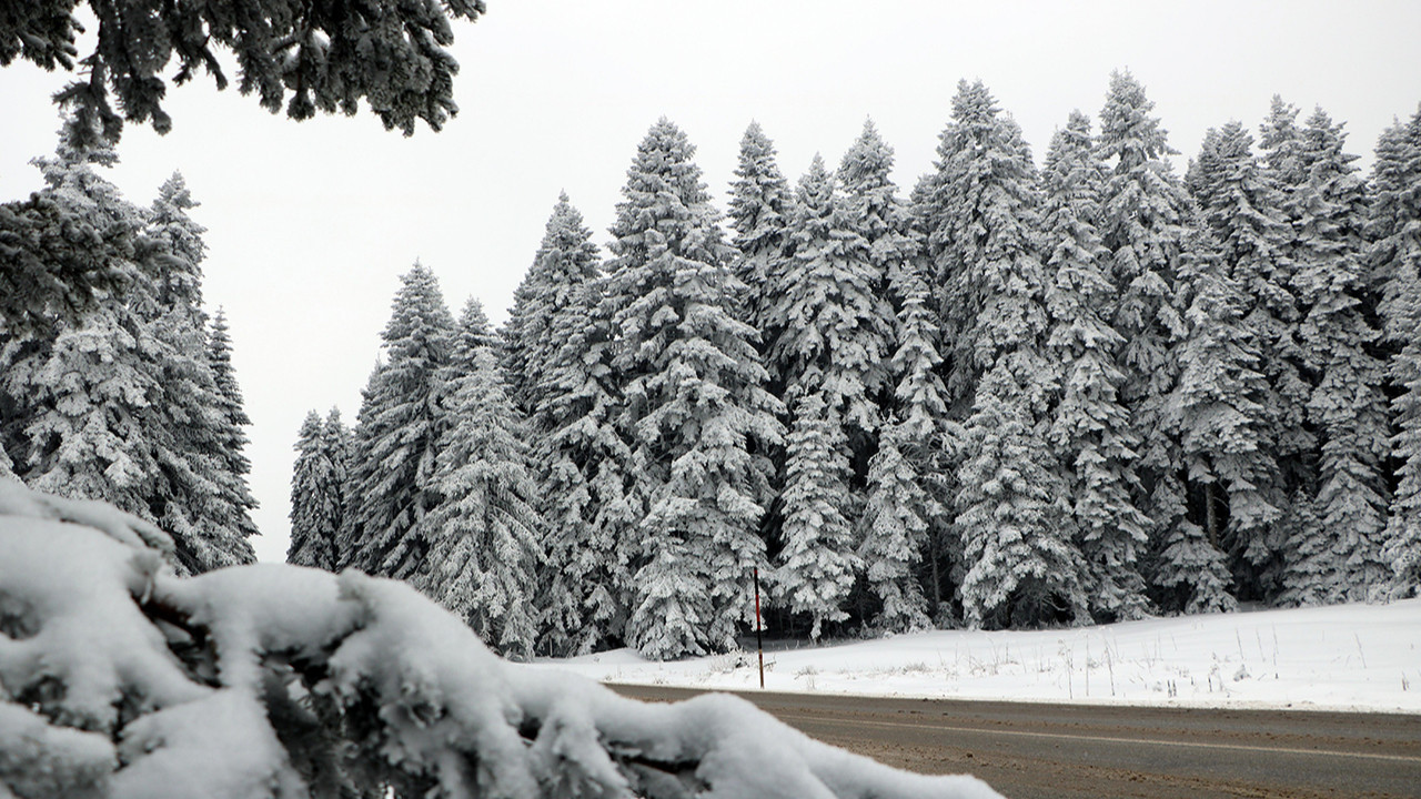 Bolu'nun yüksek kesimlerinde kar kalınlığı yaklaşık 10 santimetreye ulaşırken, kentteki yaylalar ve çam ormanları karla birlikte güzel görüntüler oluşturdu.