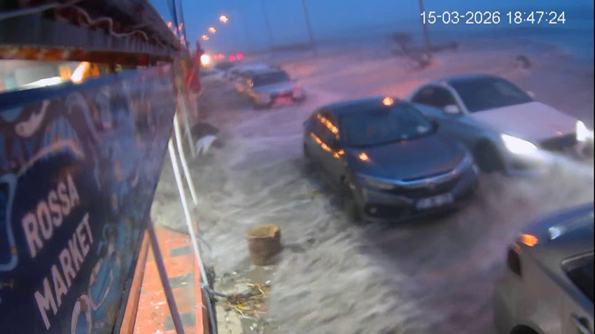 Deniz suyunun trafiğin aktığı caddelere kadar ulaştığı anlar, bölgedeki vatandaşlar tarafından cep telefonu kameralarıyla kaydedildi.