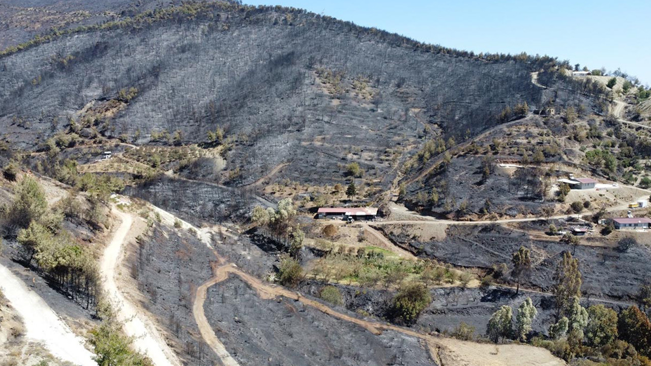 Hatay'da 30 Haziran'da çıkan ve kısmen kontrol altına alınan orman yangınında zarar gören alanlar havadan görüntülendi.