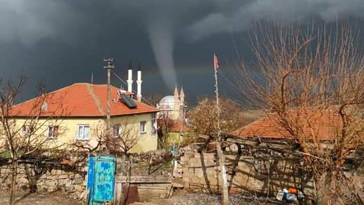 Bu arada, fırtına sırasında çıkan hortumu cep telefonuyla görüntülemeye çalışan kişi, minarenin devrilme anını da kaydetti. (DHA)