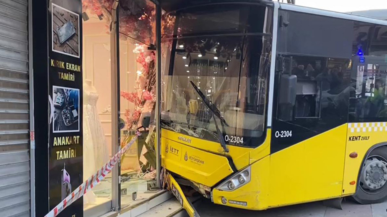 İstanbul Bayrampaşa'da şoförünün direksiyon hakimiyetini kaybettiği İETT otobüsü önce park halindeki otomobile çarptı, ardından kaldırama çıkarak bir dükkana girdi. Kazada otobüsteki bazı yolcular yaralanırken, o anlar güvenlik kamerasına yansıdı.