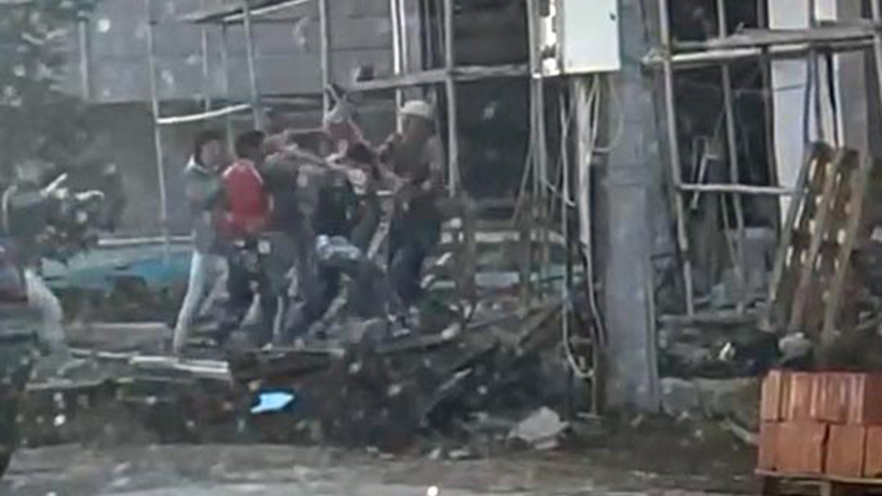 İnşaat alanı, savaş alanına döndü: Sopalı, kürekli kavga kamerada