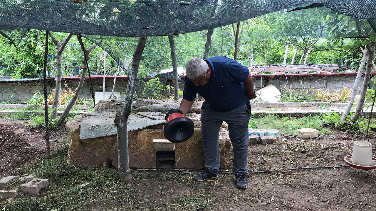 Batman’da çalıştığı kurumdan emekli olduktan sonra Kuyubaşı Mahallesi'ndeki bahçeli evinde yaşamını sürdüren ve mahallenin “Aziz dedesi" olarak tanınan Aziz Teymur, toprakla meşgul olup tavuk yetiştiriciliği yaparak emekliliğini yaşamaya karar verdi.